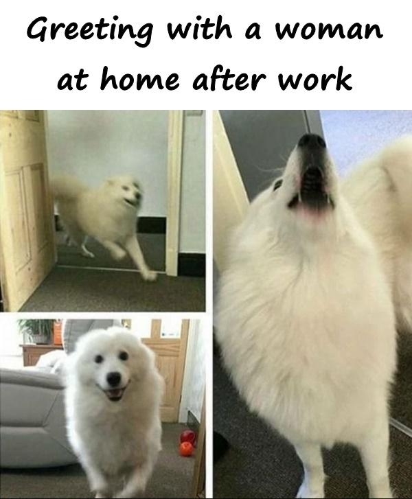 Greeting with a woman at home after work