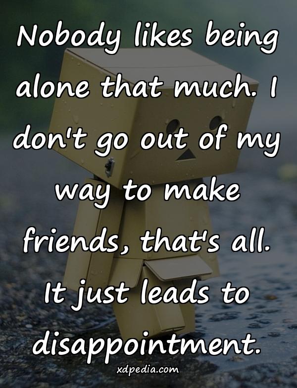 Nobody likes being alone that much. I don’t go out of my way to make friends, that’s all. It just leads to disappointment.