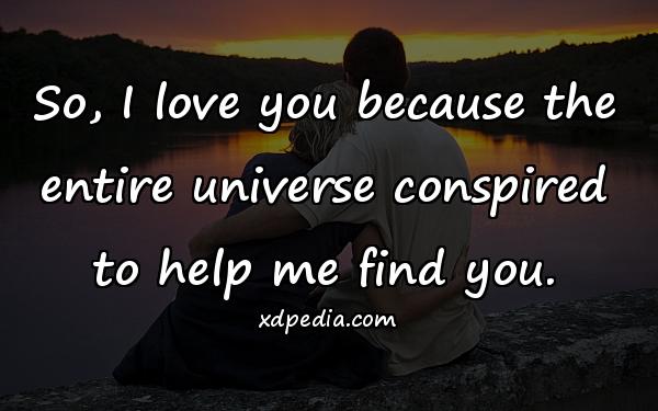 So, I love you because the entire universe conspired to help me find you.