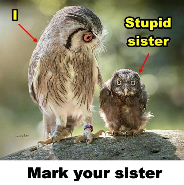 Stupid sister. Mark your sister.