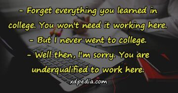 – Forget everything you learned in college. You won’t need it working here. – But I never went to college. – Well then, I’m sorry....