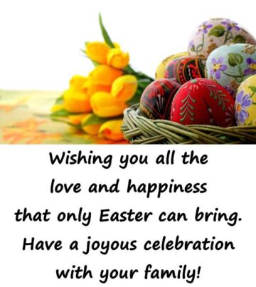 Wishing you all the love and happiness that only Easter can bring. Have a joyous celebration with your family!