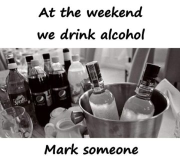 At the weekend we drink alcohol. Mark someone.