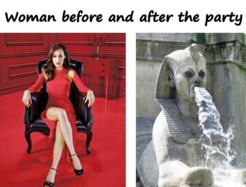 Woman before and after the party
