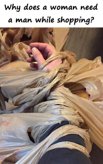 Why does a woman need a man while shopping?