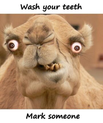 Wash your teeth. Mark someone.