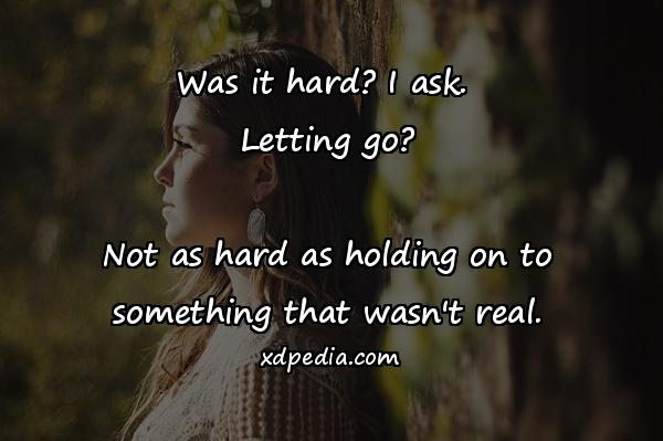 Was it hard? I ask. Letting go? Not as hard as holding on to something that wasn’t real.